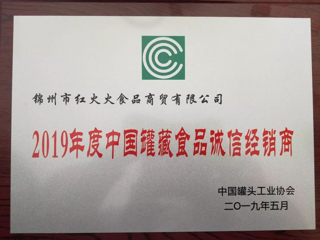 我公司經(jīng)銷商錦州紅火火商貿(mào)有限公司榮獲“2019年度中國(guó)罐藏食品誠(chéng)信經(jīng)銷商”殊榮。